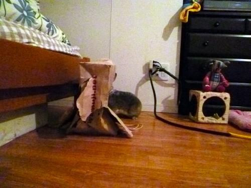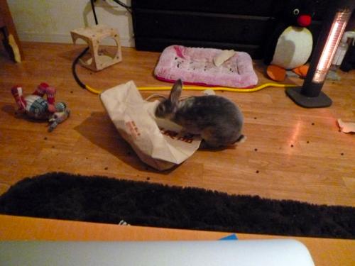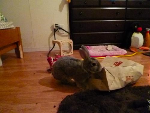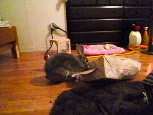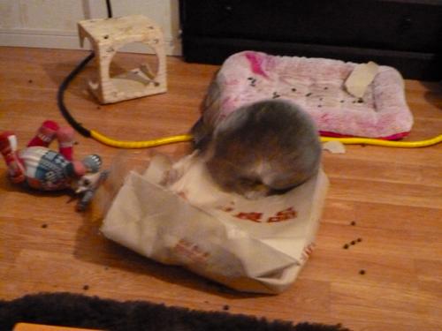 袋をビリビリにしながら転がってました。