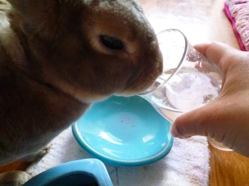 しかし世の中のウサさんたちはグラスで水を飲まないんでしょうかね?