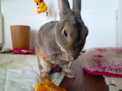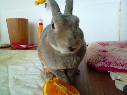 こんなにもおいしそうにぺろんちょしながらオレンジ食べてるのにねぇ