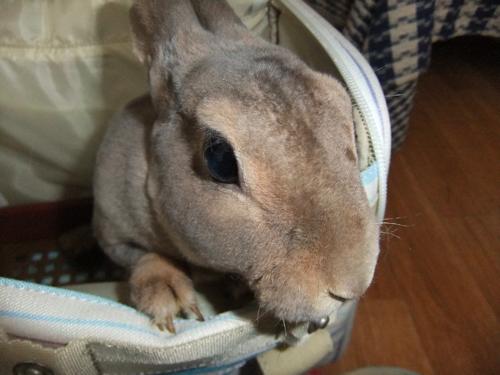 油断しているスキにバッグに押し込んで、自転車でお医者に行ってきましたよー。