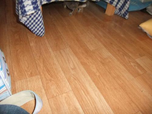 (テーブルの下に逃げ込む後ろ姿)