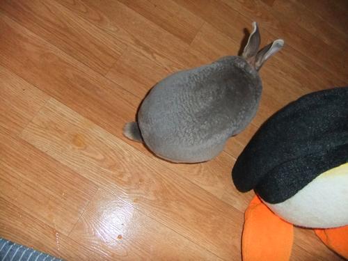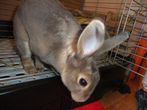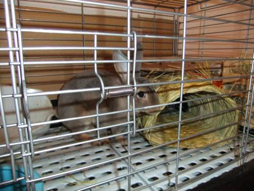 「オハヨー」とか言ってるのを無視してケージの外へ出ます。