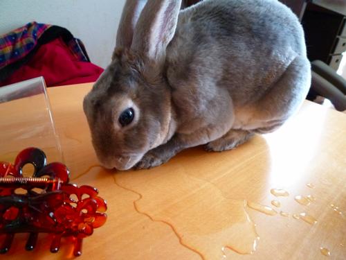 テーブルの上にこぼれたのをピロピロ飲んでたからヨシとしよう。