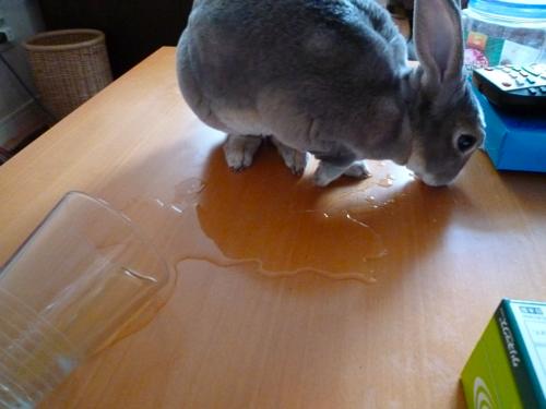 水を飲もうとしてこぼしたな。