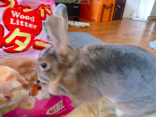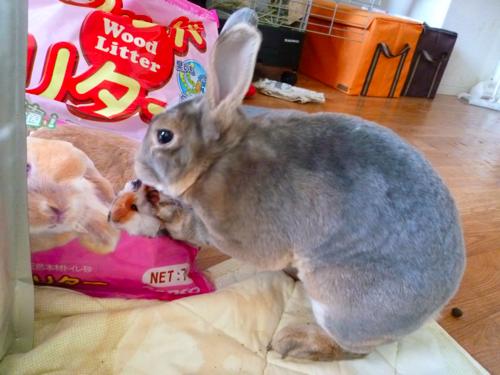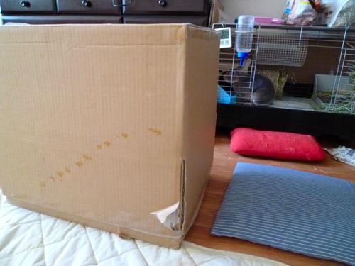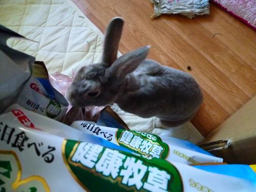 なんかしかし玄関の脇に牧草やらペレットやら満載の段ボールがあるわけでw