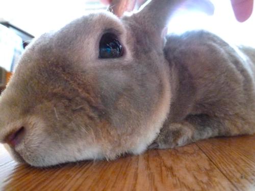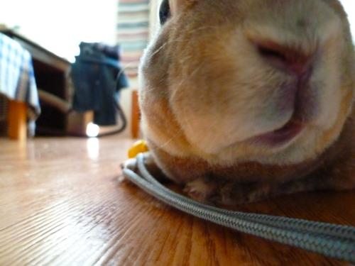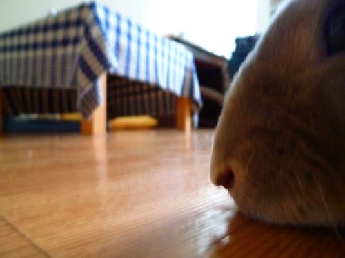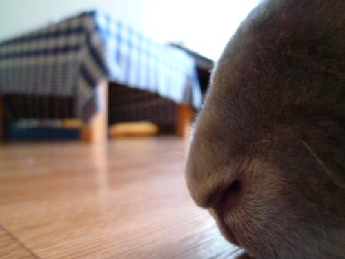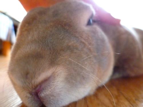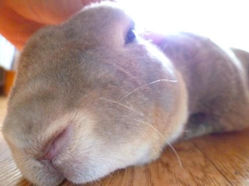 そのぺったんこ体勢になると、わたしお寝っ転がって、お鼻とお鼻をつけてなでなでしてます~。