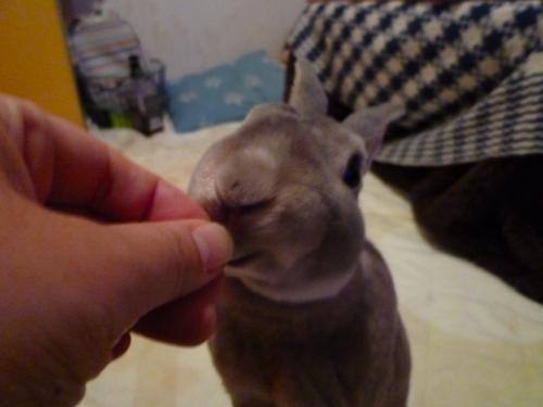 くやしいので、美味しそうなところはわたしが食べて、若干シナシナっぽいところをあげることにしていますw